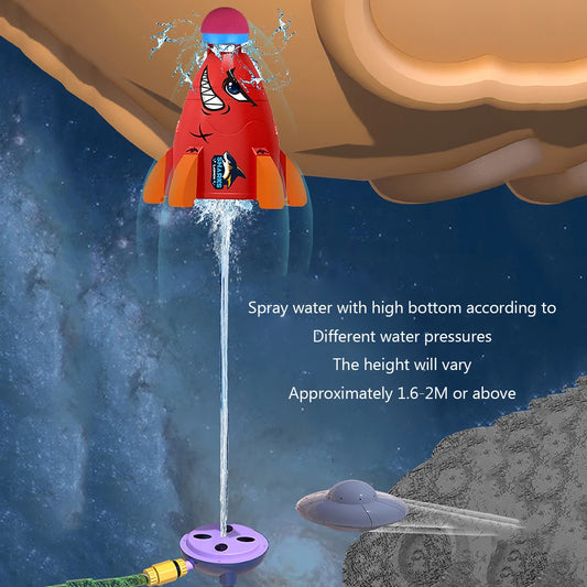 Creative Space Rocket Sprinkler Rotating Water Powered Launcher Summer Fun Entertainment for Outdoor Garden Yard Water Spray Toy